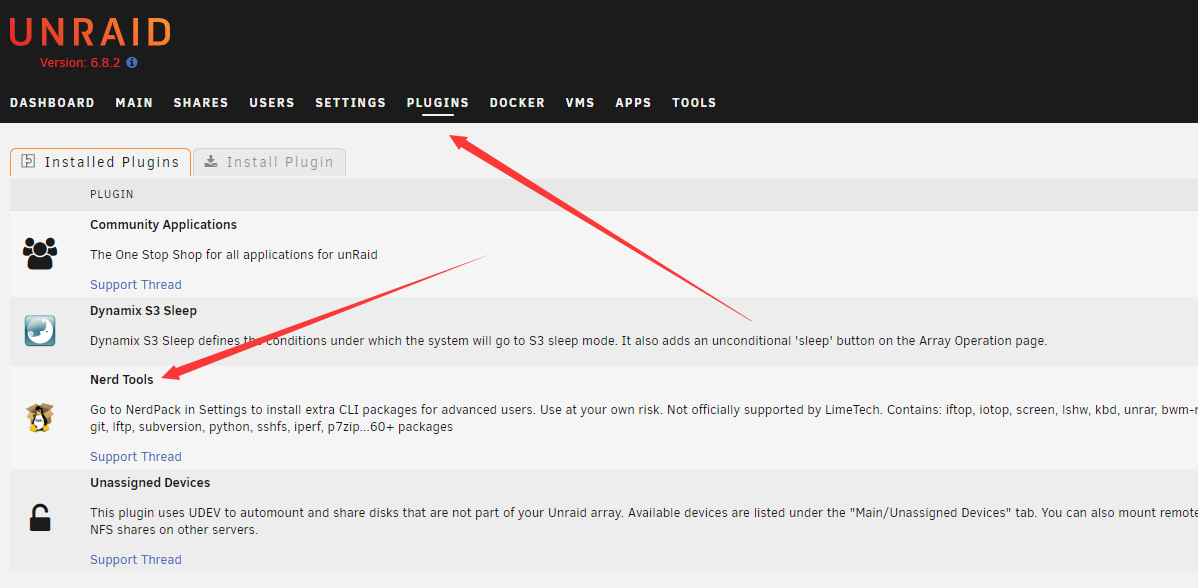 - https://forums.unraid.net/topic/35866-unraid-6-nerdpack-cli-tools-iftop-iotop-screen-kbd-etc/