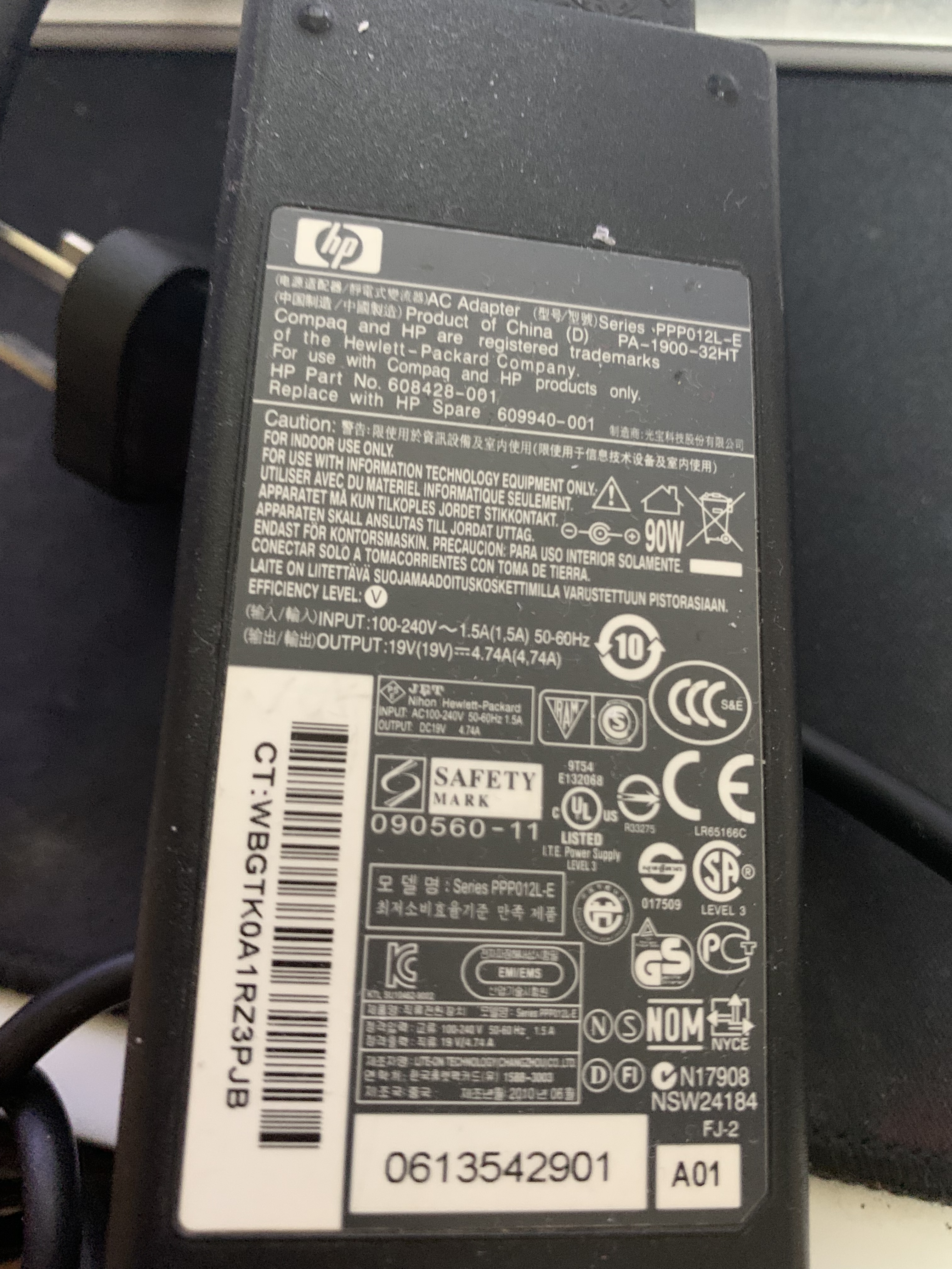 机器附带一个 19V、90W 电源适配器,实际用不到这么高的功耗。