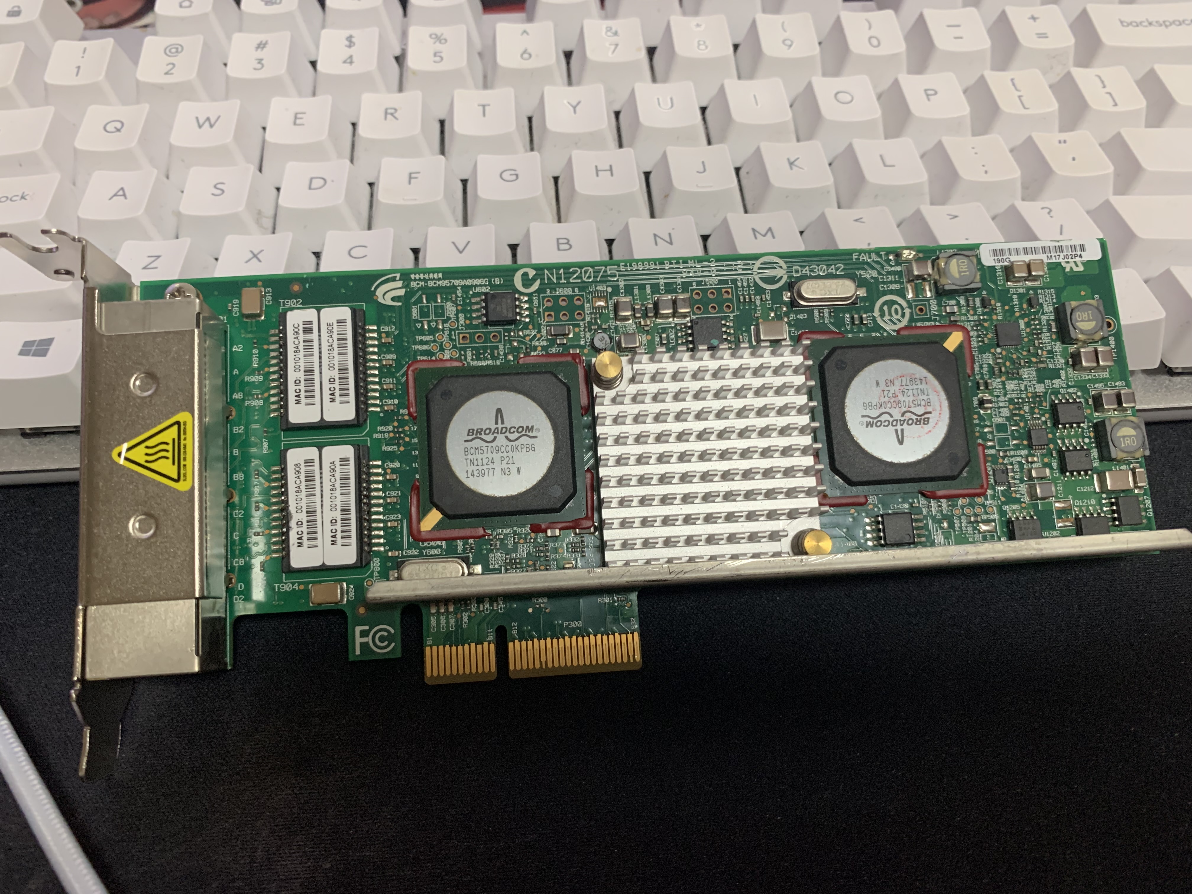 机器本身自带一个网口,因此我又花 99 买了一张古老的 BCM5709 四口半高网卡。
